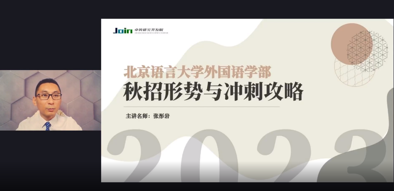 为帮助学生充分了解就业市场及秋招形势,提高学生求职技能和就业竞争力,切实做好学生就业指导和职业规划工作,10月14日,外国语学部邀请卓英研究开发院院长、百所高校特邀就业指导专家张彤岩开展了“2022年秋招形势与冲刺攻略”的线上主题讲座,共347位同学在线观看了讲座。