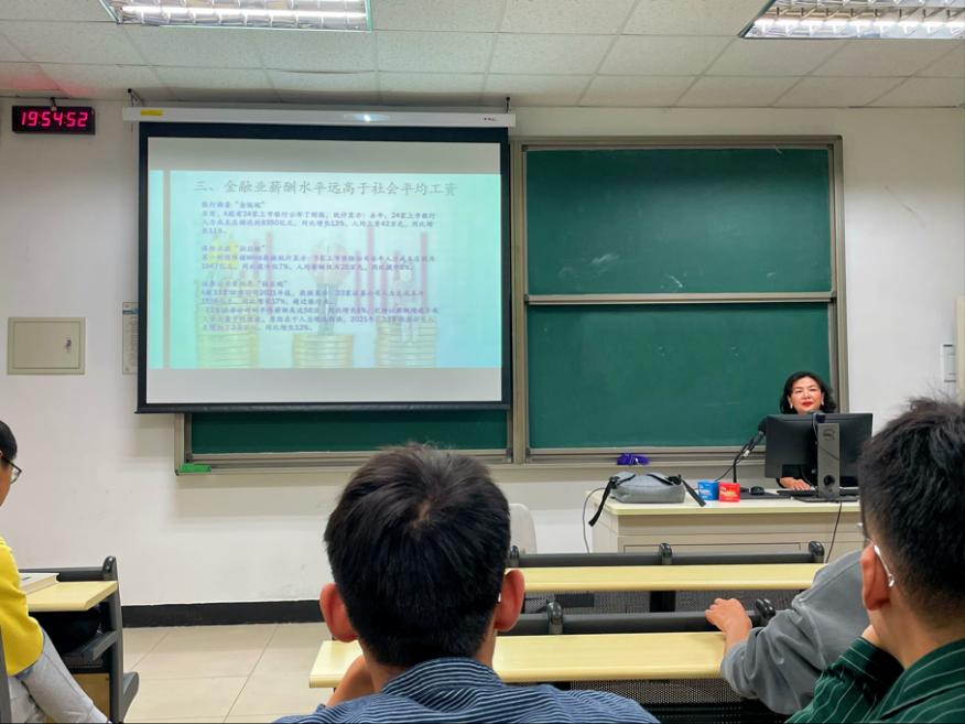 10月21日晚,人保金融服务公司高级金融总监钟宇菁老师为金融专业硕士的同学们带来题为“认清风险底线,做合格金融专业人”的线下专题讲座,并现场解答同学们的疑问。