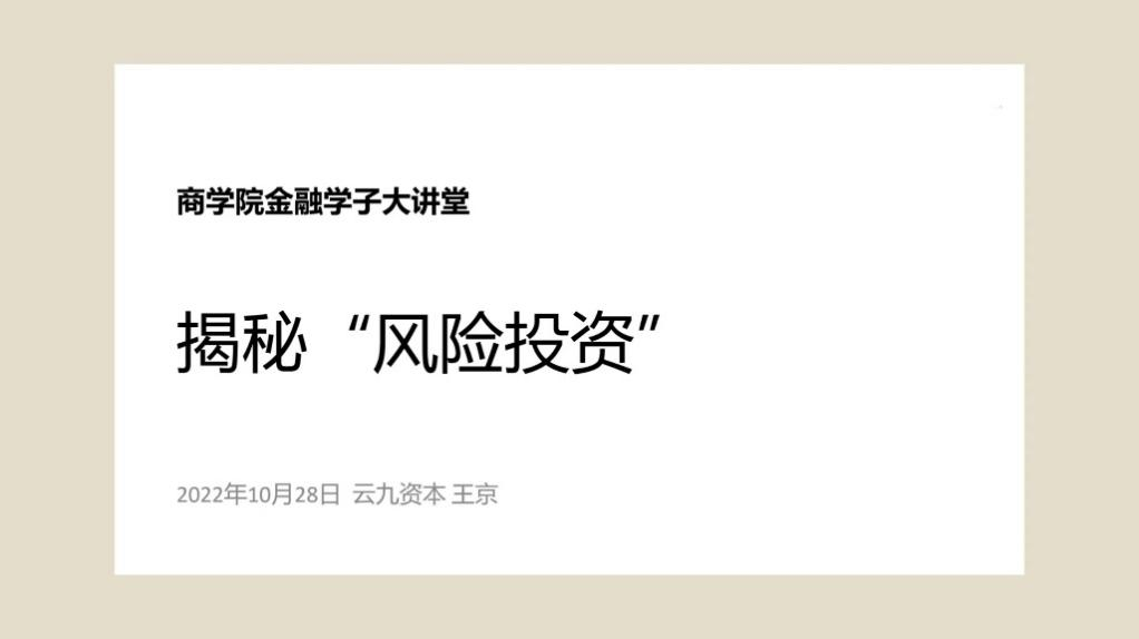 10月28日晚,云九资本合伙人王京老师受邀为金融专业硕士的同学们带来题为“揭秘风险投资”的线上专题讲座,并现场解答同学们的疑问。
