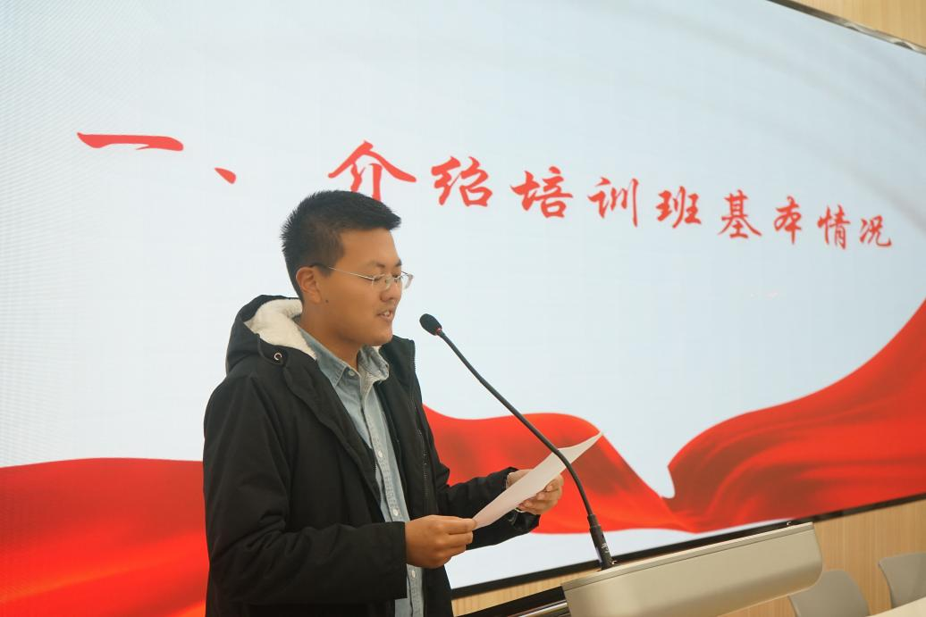 钦浩老师首先向与会学员介绍了培训班的基本情况。钦浩老师从培训班简介、学习安排、学院纪律、培训考核、临时党支部及班委会等方面展开说明,激励学员们在发扬刻苦斗争精神,努力学习,拼搏进取,在实践中磨炼自身,发扬青年骨干党员的良好形象。