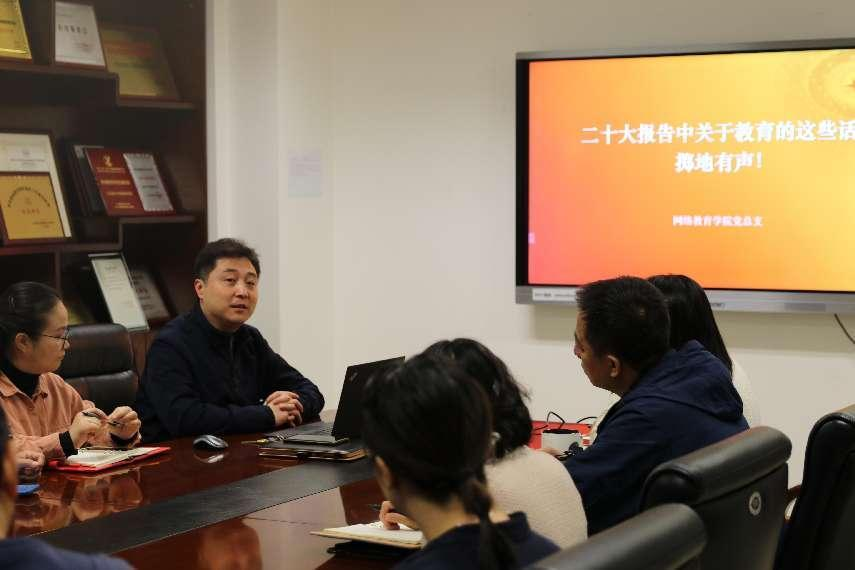 为认真学习贯彻党的二十大精神,引导全院党员和教职工充分认识新时代新征程中高等教育的意义,以实际行动推动党的二十大精神落地落实,网络教育学院决定组织系列学习活动。10月28日开展了第一次集体研学,由院长李炜做“二十大报告中关于教育的论述”分享交流。本次学习由党总支书记王小萍主持,全体党员及学院各部门负责人参加。