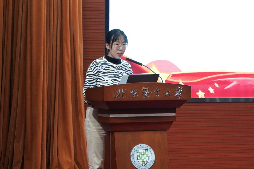 张晴老师从共青团“是什么”“为什么”“怎么办”三个方面展开,为新生团干部们全面讲述了共青团的光荣历史与伟大使命。首先,张晴老师带领大家共同回顾了共青团百年来在党领导下的辉煌历程,鼓励在座学员以史为鉴,踔厉奋发,开创未来。随后,张晴老师结合各个时期先进共青团员的奋斗故事,带领大家学习了百年来共青团形成的宝贵经验,勉励广大同学学习先进事迹,传承红色精神。最后,张晴老师结合北京市第十三次党代会精神和中国共产党第二十次全国代表大会精神,带领同学们深刻领会作为首都青年投身北京“四个中心”建设和全面推进中华民族伟大复兴事业中的职责使命,号召全体学员永远跟党走,建功新时代,奋进新征程。