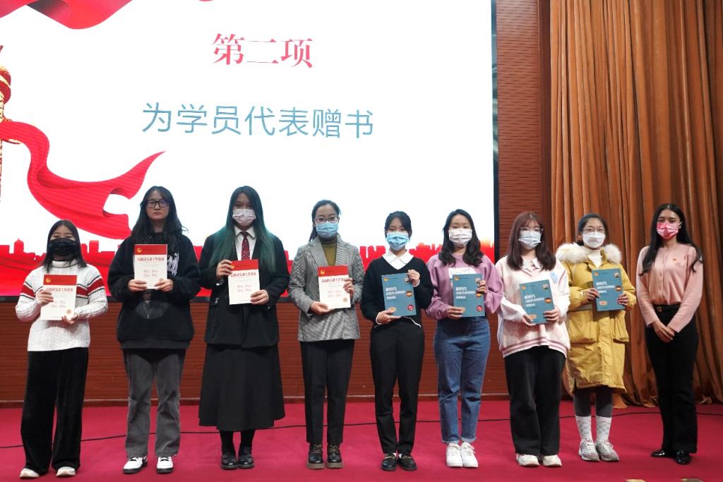 校团委实践教育中心主任邹泺铱老师为学员代表们赠送了《新时代高校共青团知识简明教程》一书,为学员们进一步熟悉团务工作、提升理论素养提供了帮助指导。