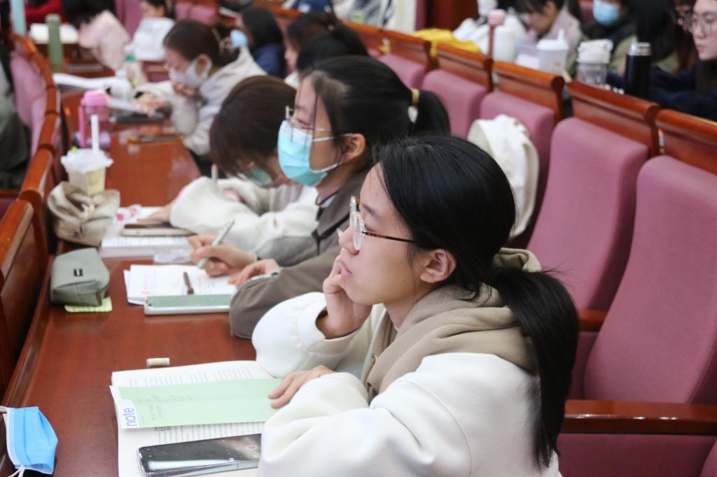 张阳书记强调,学习贯彻党的二十大精神,一定要按照习近平总书记在党的二十大报告中所说的,做到“五个牢牢把握”。以此为出发点,张阳书记从“新时代新征程的使命任务”、“开辟马克思主义中国化时代化新境界”、“建设社会主义现代化国家关键在党”三个方面,对二十大精神进行了解读分享。张阳书记的分享紧密结合历史与当下、理论与事实、校情与专业。张阳书记强调,深入学习党的二十大精神,要注意坚持马克思主义与中国具体实际的结合,更要注意马克思主义与中国优秀传统文化的结合。作为文学院的学生,要全面了解中国优秀传统文化的内涵,坚定文化自信;作为北语的学生,要全面了解中国国情,坚定爱国情怀,做人类命运共同体的建设者和推动者。他指出,各个支部要进一步加强对二十大精神的学习,要把理论学习与专业实践紧密结合起来,内化于心,外化于行。
