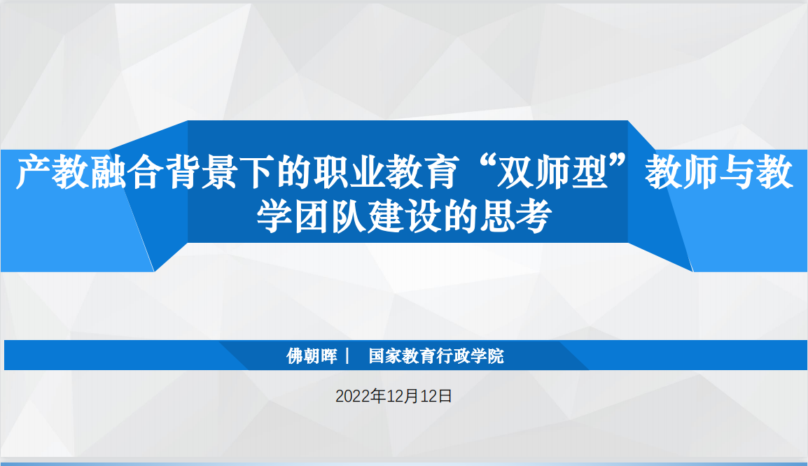 国家教育行政学院教育行政教研部佛朝晖教授所做的专题报告,主题为:“产教融合背景下的职业教育“双师型”教师与教学团队建设的思考”。多维视野,产教融合,校企合作,工学结合,知行合一,几个关键词将复杂的问题条分缕析,让刚刚接触职业教育的人也能轻松理解。