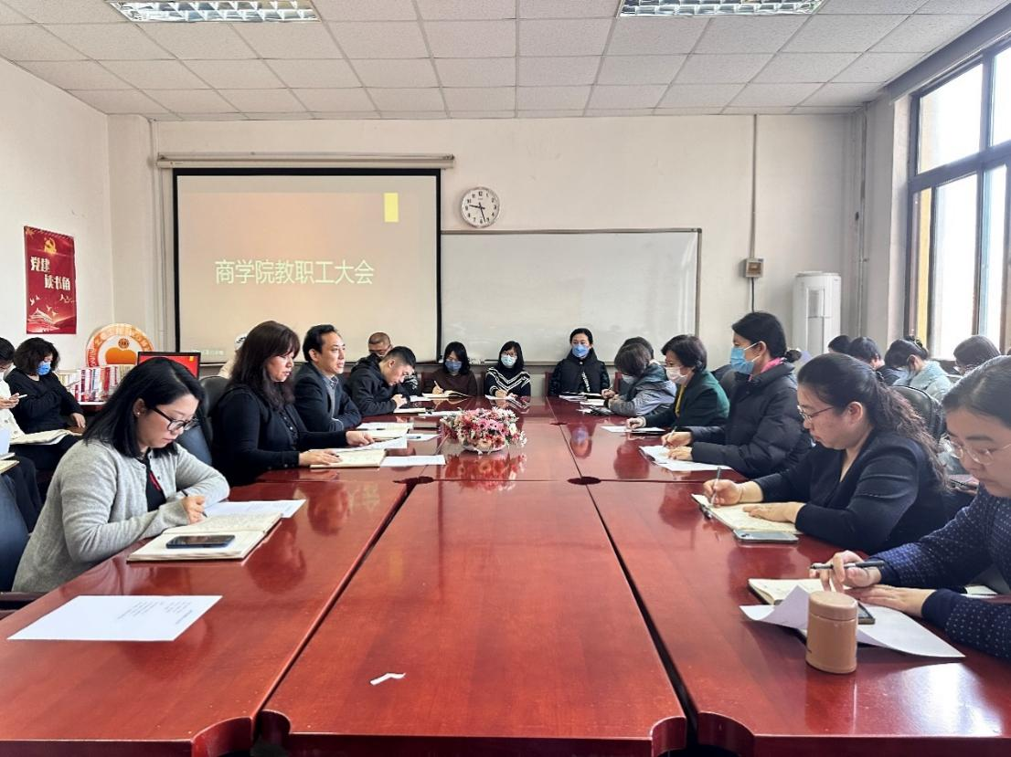 2月24日上午,商学院在主南418会议室召开2023年春季新学期全院教职工大会,全体教职工参加了会议。会议由商学院院长宋晓玲主持。