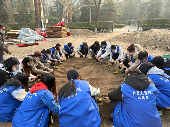 在北语的花房一角,志愿者们跟随着园艺师傅的教导,小心地将幼苗移栽到花盆里,种下对北语春天的期盼;月季园中,志愿者们精心修剪、小心打理经过了一冬天的枯枝,期待着月季新一年的芬芳;走在校园的小径上,随处可见身着蓝色马甲的同学们正仔细检查着地面上的每一个角落,不放过任何一点垃圾碎屑。雷锋精神无小事,移植一株小苗、捡起一片垃圾、传播一份精神。