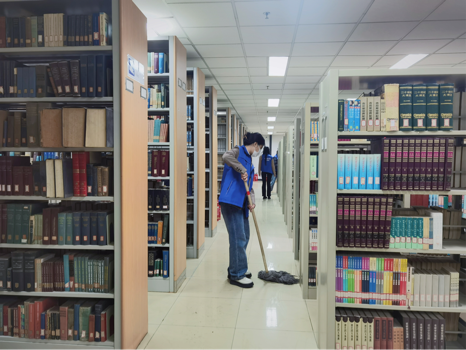 在教四楼,大家分工明确、不慌不乱地清洁地面、整理宣传栏、收整杂物……教四楼在他们的努力下,变得焕然一新。在图书馆的书库内,也能见到文学院志愿者的身影。图书馆的顺利运行,离不开图书管理与保护工作。在志愿活动期间,同学们在图书馆负责老师的安排与指导下,分区域分职责进行图书整理与分区工作。帮助图书馆工作人员对即将开放阅览的教一楼地下阅览室进行尾声清扫。在浩瀚的书海之中,新时代的雷锋精神正在熠熠闪光,帮助图书馆工作人员分摊了工作压力,共建共享更加整洁的图书馆。志愿者们忙碌的身影,就好像一个个小小雷锋,活跃在校园里,维护着同学们的学习环境,建设着更加美好的校园。