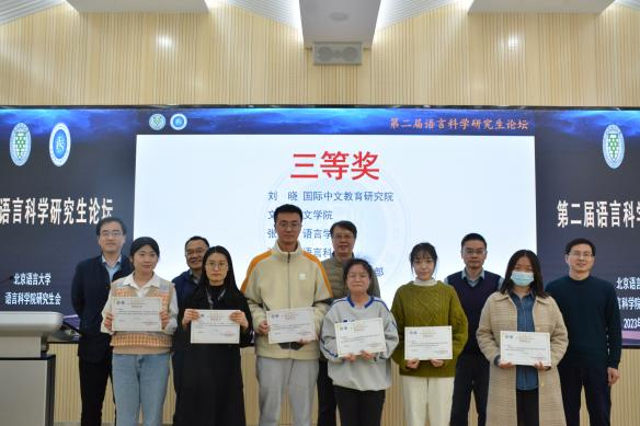 语言科学院张程副院长宣布了第二届语言科学研究生论坛获奖名单,并邀请颁奖嘉宾为获奖者颁奖。张雯雯等11位同学分别获得一二三等奖。