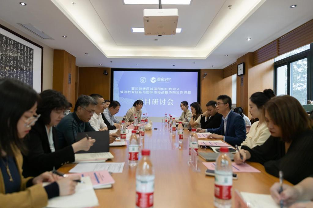 4月14日下午,北京语言大学新闻传播学院与章鱼时代科技发展有限公司“面对特定区域国别的在线中文读写教育创新与国际传播战略协调”合作课题启动与首次研讨会在图书馆明德讲堂召开。