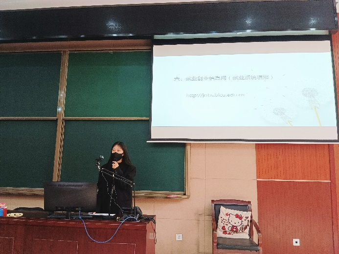 接下来,辅导员毛星月老师详细介绍了有关毕业的重要概念,对户口迁移、签约就业、政策性岗位申报、考研及出国留学等注意事项进行了说明,并且再次强调了手续办理流程、相关重要部门以及就业创业信息网等方面的内容,方便学生们高效完成毕业手续的办理。涂欣悦老师为同学现场演示了就业创业信息网系统中毕业去向填写的相关操作步骤。毕业生们认真倾听了老师们的详细讲解,对于未来的发展和职业走向也有了更加清晰的认知。