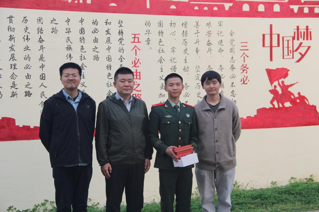 我校慰问师生受到了部队官兵的热情接待并组织座谈会深入交流。在座谈会上,学工部张洋老师代表学校向庞文博同学致以亲切慰问,向所在部队官兵致以崇高的敬意和衷心的感谢,高度肯定庞文博同学相应党和国家号召积极参军入伍的选择,希望庞文博同学不忘初心,牢记使命,献身国防,安心服役,做人民的好卫士、祖国的好战士。武装部钦浩老师希望庞文博同学继续努力,既要为荣获“四有”优秀士兵称号而骄傲,更要始终以“有灵魂、有血性、有本事、有品德”的“四有”标准随时要求自己,永远做新时代的“四有”革命军人。赵湘石同学也代表北语全体退役战友表示慰问和鼓励。庞文博对母校老师和同学前来部队探望慰问非常感动,他汇报了自己入伍以来的表现和心路历程,表达了自己投身国防、献身使命的坚定决心。部队首长和战友们对庞文博给予了极高的评价,也非常感谢北京语言大学对他的长期培养。