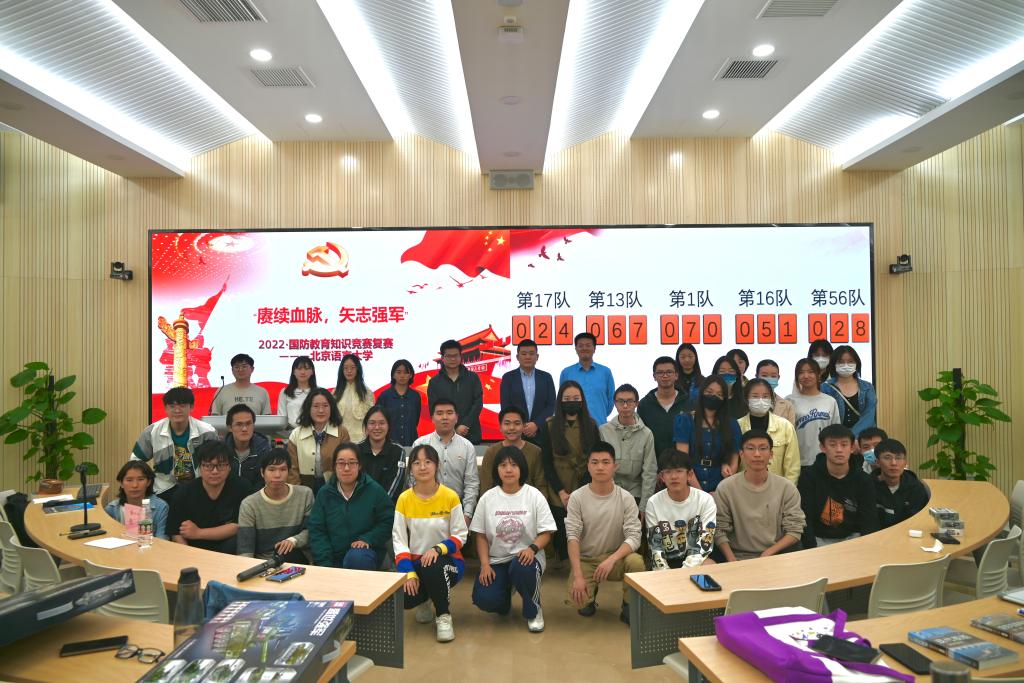 4月10日,由校党委学工部、武装部主办、国防教育协会承办的北京语言大学“赓续血脉 矢志强军”国防教育知识竞赛决赛在教二101成功举办,共有5支在初赛中表现出色的队伍晋级决赛,来自各学部院系的15名选手同场竞技。本次比赛旨在引导广大学生理解总体国家安全观,牢固树立总体国家安全意识,厚植爱党爱国爱社会主义情感。党委学工部张洋副部长、武装部军事教研室钦浩老师作为嘉宾出席活动并担任评委。
