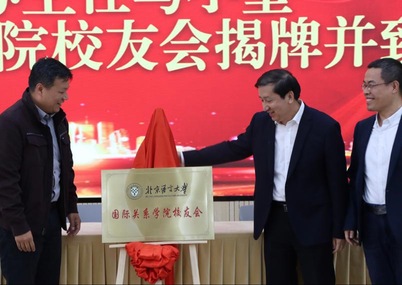 之后学校校友办主任马小垒、国际关系学院院长贾烈英、国际关系学院党总支副书记(主持工作)王秋生共同为国际关系学院校友会揭牌。