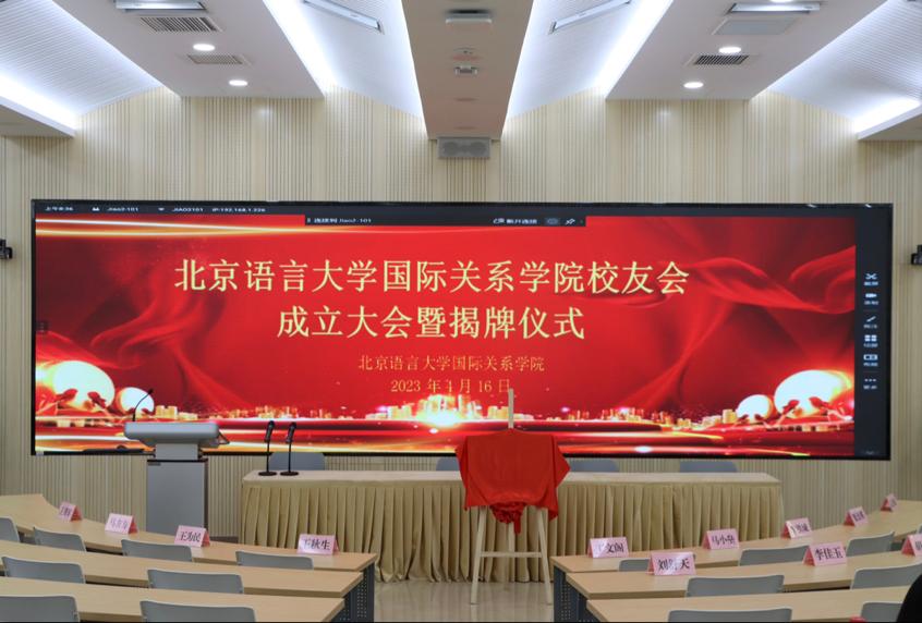 4月16日上午,北京语言大学国际关系学院校友会成立大会暨揭牌仪式在教二楼101举行。校友办主任马小垒、马克思主义学院党总支书记丁文阁、新闻传播学院院长云国强出席了本次活动,国际关系学院教师代表、校友代表共计60余人共话同窗情谊。副院长马方方主持仪式。