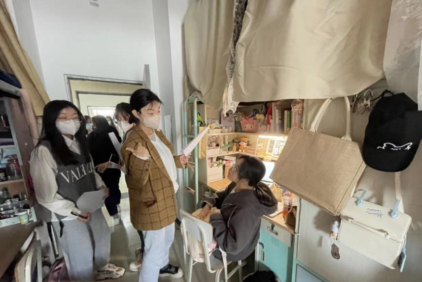 本次学生宿舍安全卫生检查重点从学生宿舍寝室安全、物品摆放、宿舍卫生、宿舍文化等方面展开,具有较强针对性。老师和党员、学生干部们认真查看宿舍每个角落,不放过任何一个卫生死角,细心检查所有可能发生的安全隐患,以查促改,防患未然。在检查中,领导老师们还与学生亲切交谈,提醒同学们五一假期临近,要注意个人安全,宿舍人走断电,共同营造安全的校园环境。