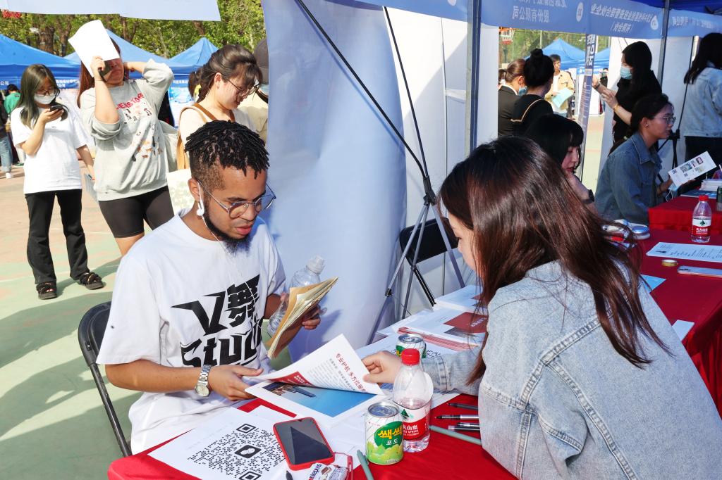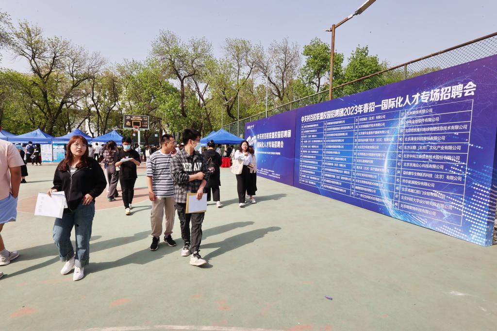 4月19日,中关村百校联盟校园招聘团2023年春招——国际化人才专场招聘会在篮球场顺利举行。本场招聘会由北京市海淀区人力资源和社会保障局主办,我校协办,活动面向本硕博应届生、中国归国留学生以及外籍在中国的国际学生,招聘会同步辐射周边高校应届毕业生。就业创业指导中心主任刘喆与北京市海淀区人力资源公共服务中心相关负责人在招聘会现场沟通了解用人单位招聘需求。