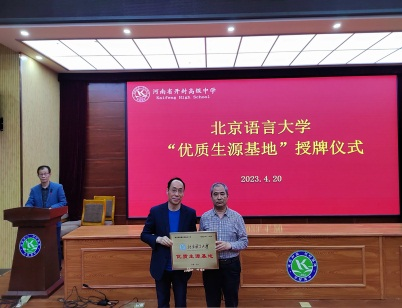 日前,北京语言大学招生组、学生处贾景忠老师走进河南省开封高中、河南省实验中学和河南大学附属中学(以时间先后顺序排序)等三所学校,开展招生宣传活动,并进行“优质生源基地”签约授牌。