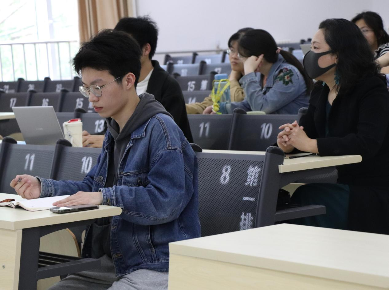 在董锦超校友结束个人分享后,同学们纷纷对讲座内容做出了积极的反馈和提问。大家踊跃举手,就实习方向、岗位选择、兴趣择业等问题提出了自己的疑问。校友巧妙地结合生活经历解答了同学们的困惑,并亲切地给出了自己的建议:积极试错,勇于探索。