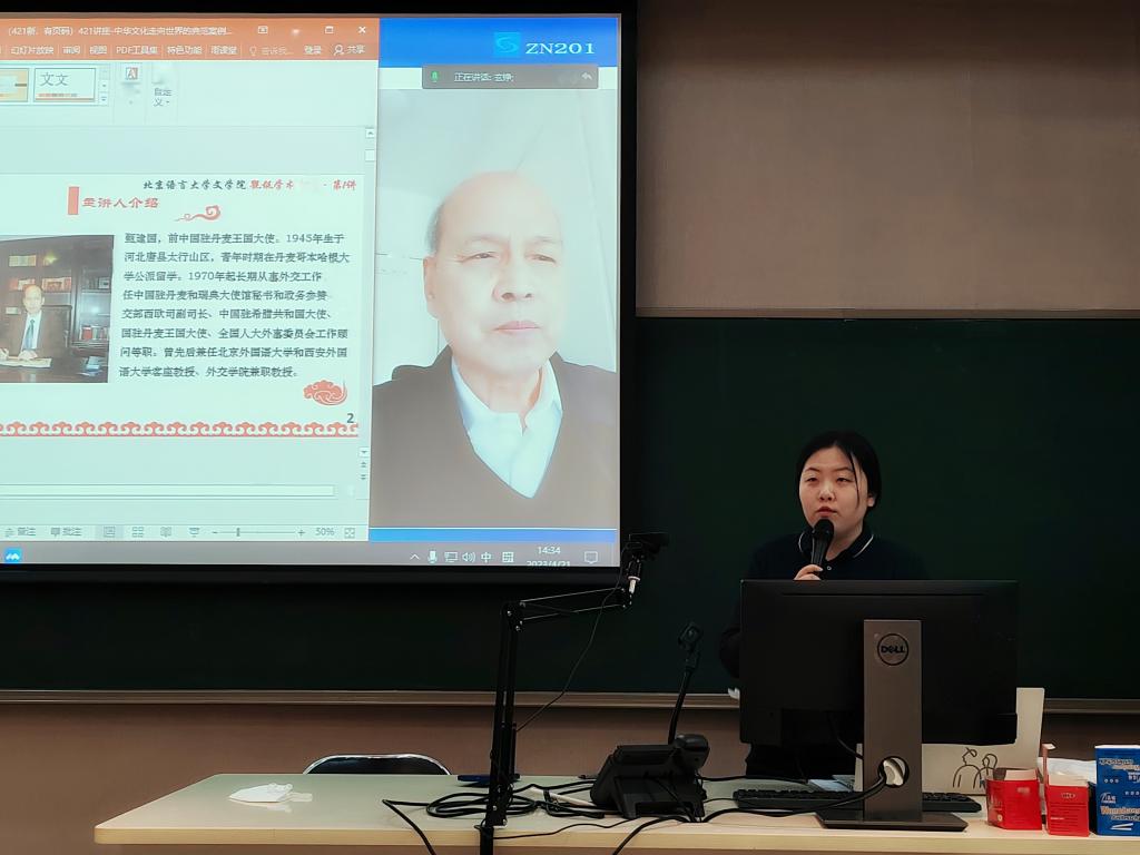 文学院团委书记玄铮老师在此次活动中发言提到,讲座能够进一步推动北语青年学子重视文化外交,以国际视野思,以实际活动践行“德行言语,敦睦天下”的校训。