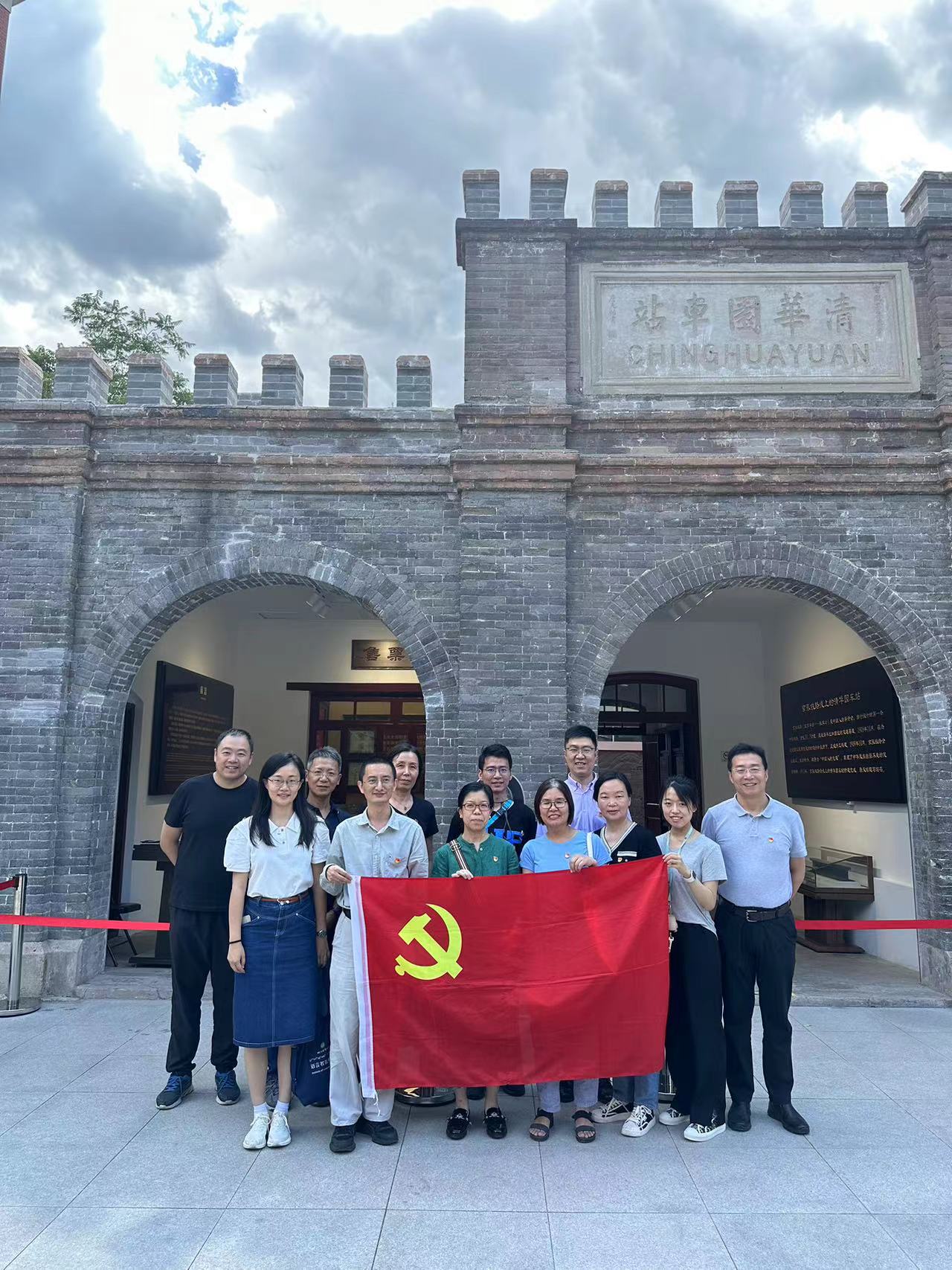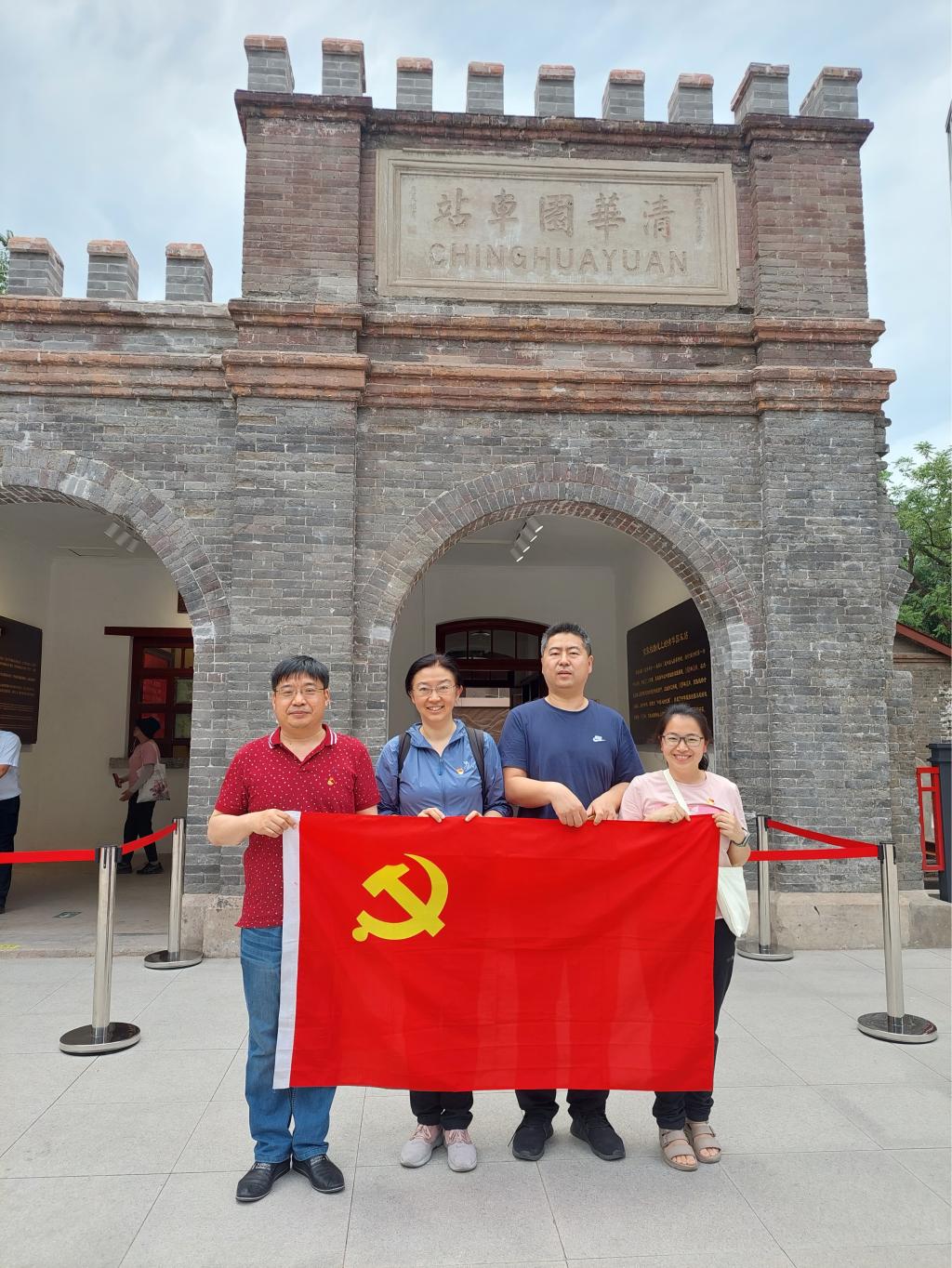 党员教师们在清华园车站旧址前合影留念