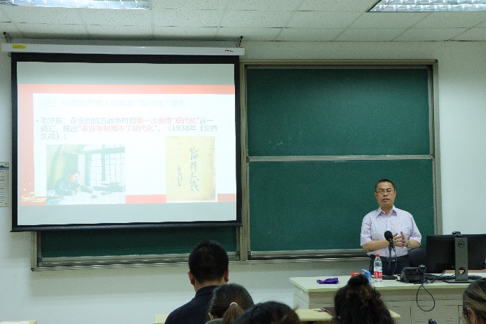 本次党课的主题是“深入把握‘中国式现代化’”。党课伊始,王老师从“现代化”的词源和中国早期“现代化”理念等六个方面对“现代化”理论发展的历史脉络进行了全面而系统的介绍。随后,围绕“中国式现代化”这一主题进行了介绍,让大家对“中国式现代化”的生成逻辑、丰富内涵和基本特征等有了更加深刻的理解。