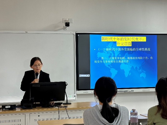 5月10日18:00,副院长马方方以“新时代十年的伟大变革:内政与外交”为题为研究生党支部和入党积极分子上了一堂生动的主题党课,讲述了新时代十年,是习近平外交思想历史性创立、体系日益完备、内涵丰富拓展的十年,是为外交工作提供强大理论武装、先进思想指引、科学行动指南的十年。