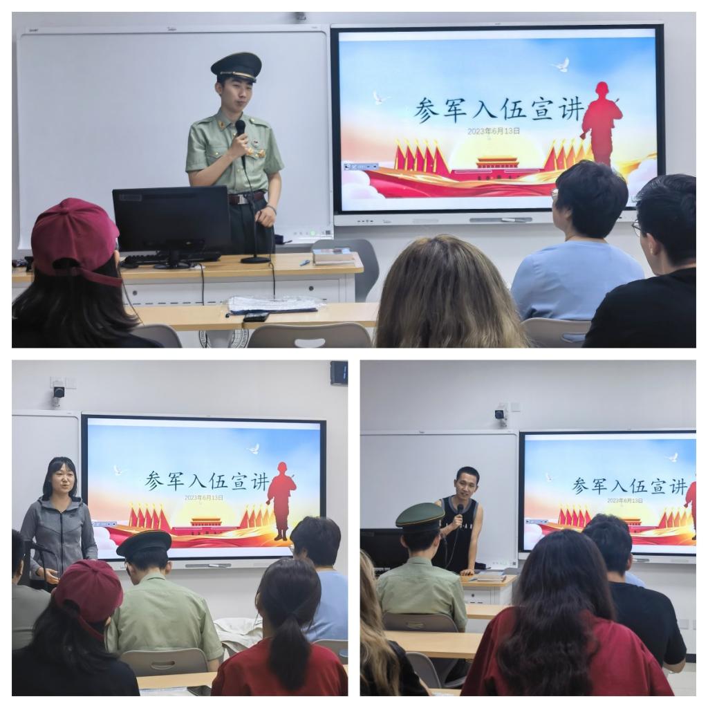 为了满足少数民族学生参军入伍愿望、实现从军报国的理想。北京语言大学学工部于6月13日晚召开少数民族学生参军入伍宣讲会。武装部军事教研室钦浩老师,新疆内派教师刘华,退役大学生士兵代表和有入伍意愿的少数民族学生参加此次活动。