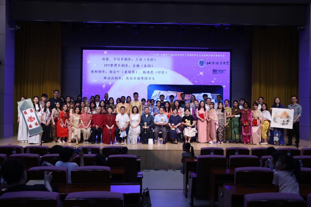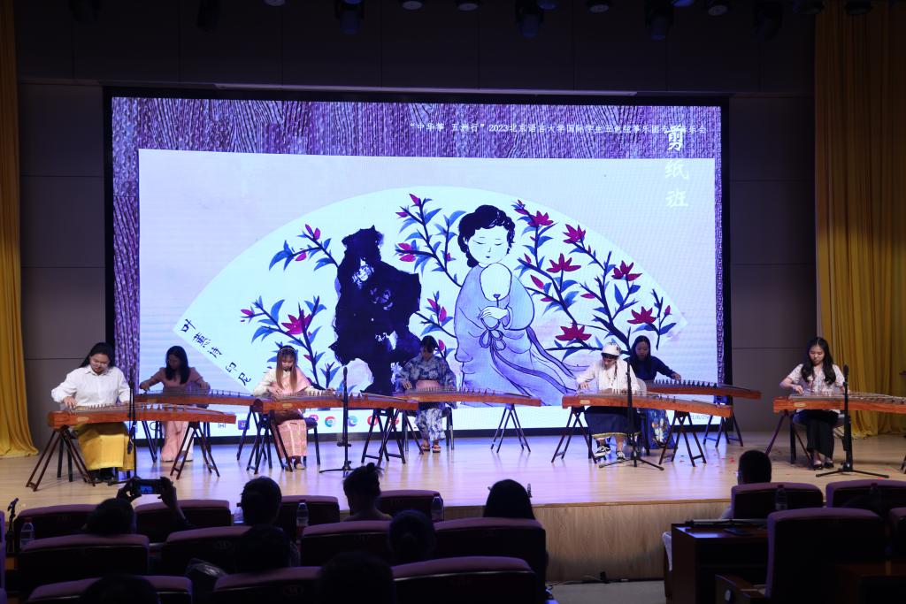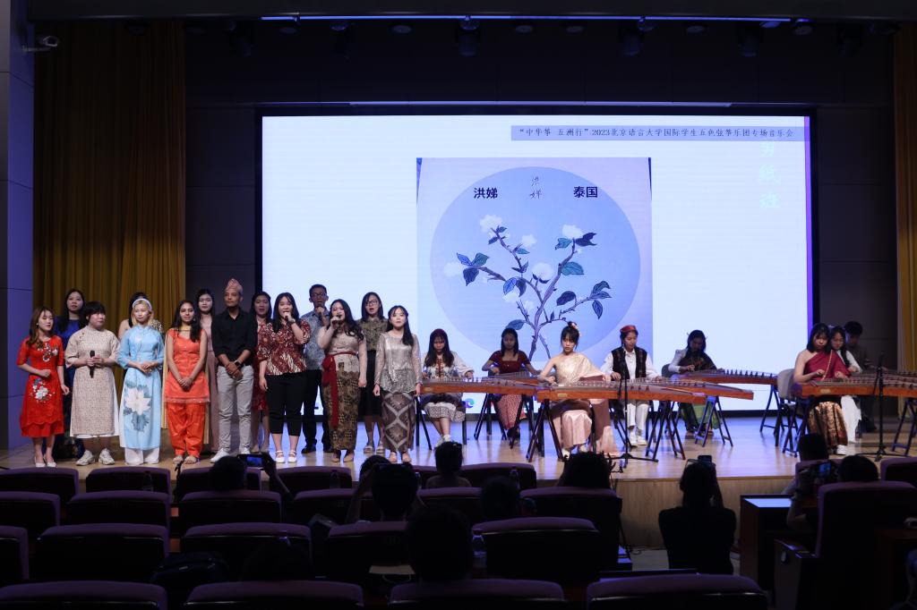 6月21日晚,北京语言大学艺术学院国际学生五色弦筝乐团终于在疫情后又迎来了线下专场音乐会。来自十多个国家的国际学生身着各自的传统服饰共奏“中华筝”,音乐会特邀“中国画”、“中国剪纸”、“北京语言大学中外学生艺术团留学生声乐”课国际学生。