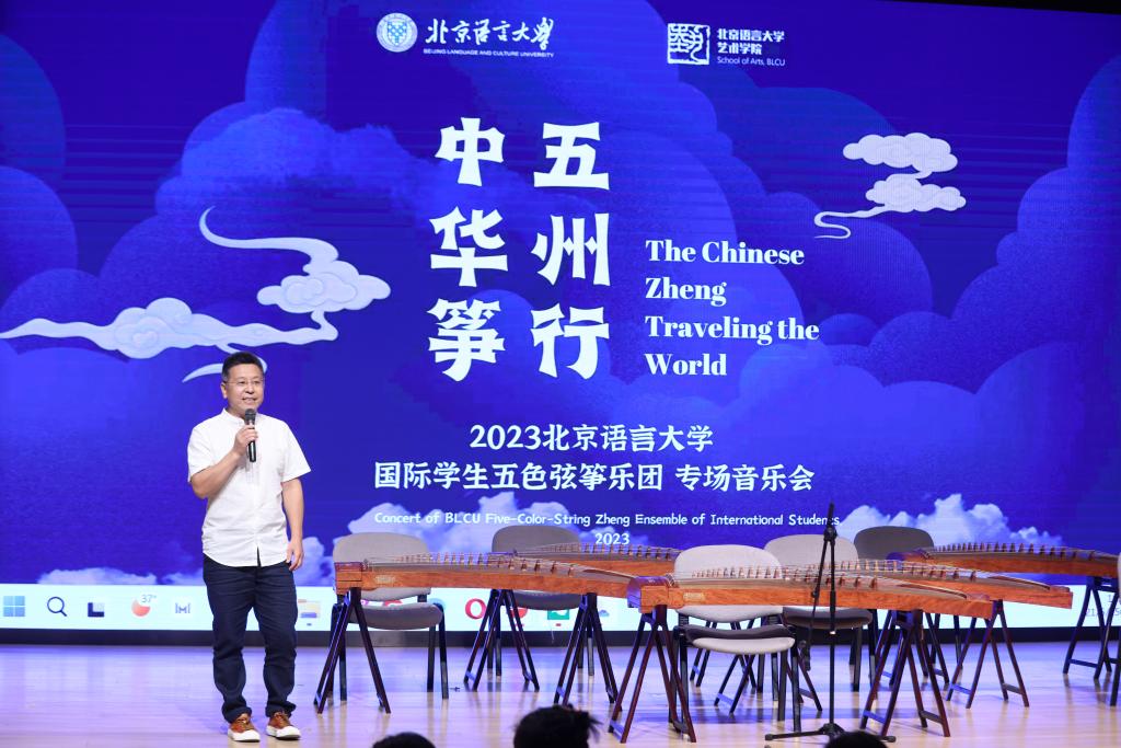 音乐会的最开始,艺术学院副院长史大鹏老师向在场的观众介绍了北京语言大学艺术学院为全校国际学生开设的中国艺术课程,通过美育让国际学生了解中国、感受中国。