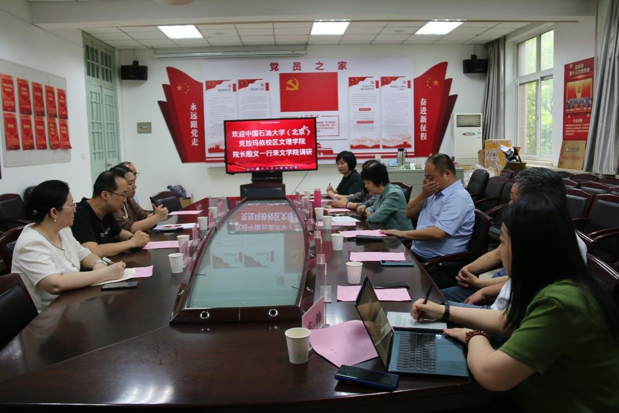 7月4日,中国石油大学(北京)克拉玛依校区文理学院院长殷文、副院长杨妍一行赴文学院调研交流,文学院党委书记张阳、院长钱婉约会见了殷文一行。