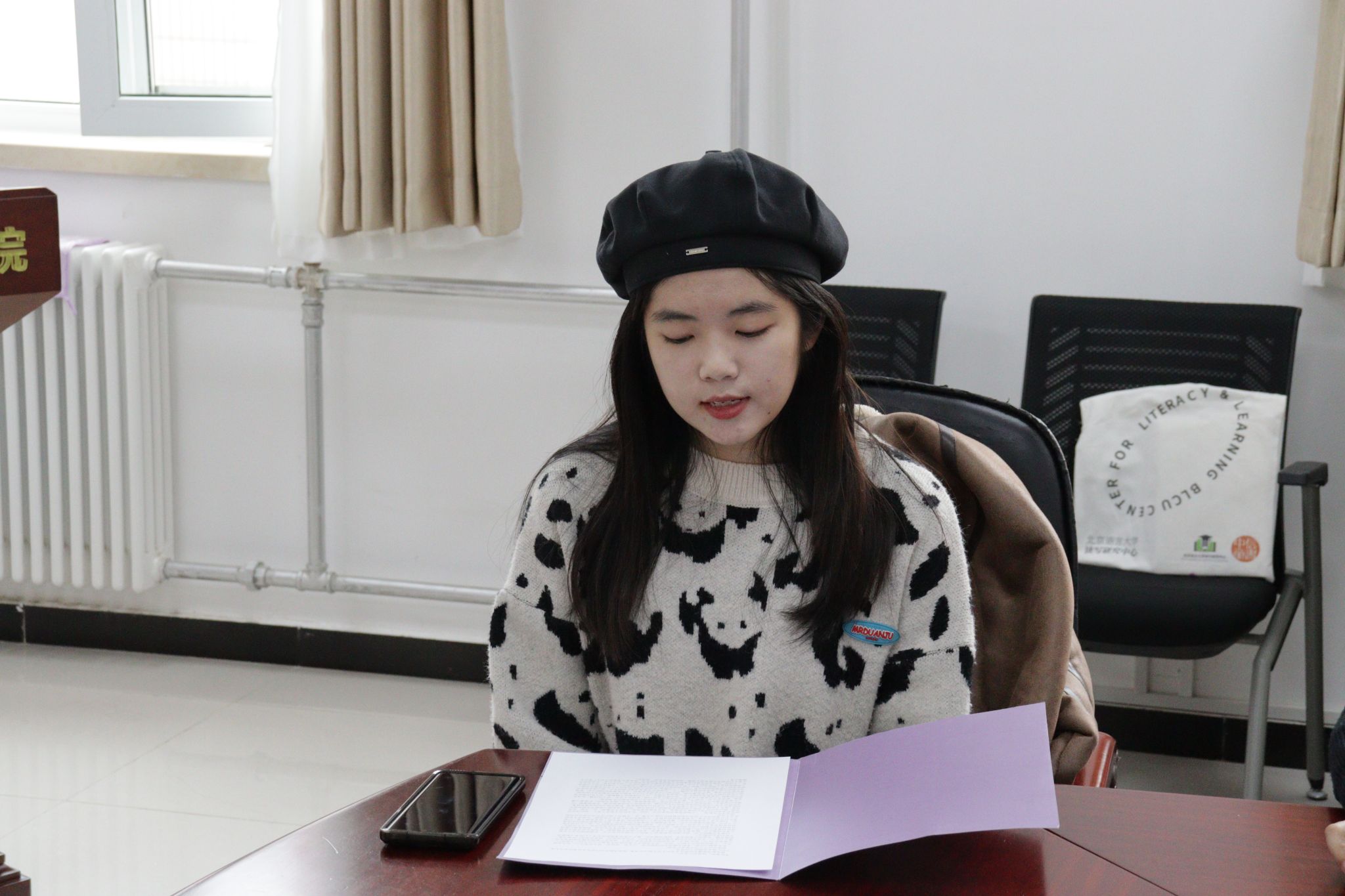 团总支本科生学生副书记李葉、研究生学生副书记肖梓欣依次发言,她们对团总支本研各部门近半学期的工作内容进行了总结,并针对团总支下一步的工作计划进行汇报交流。李葉同学提出,团总支各部门目前存在对工作流程的不熟悉、对工作内容的设想比较笼统等共性问题,希望大家在之后的工作中积累经验,勤学勤问,加强沟通。