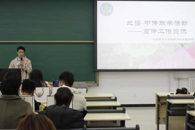 11月19日,北京语言大学与中国传媒大学两校联学活动于北京语言大学顺利举行。联学活动分为校园参观和新媒体宣传技能分享交流会两部分,两校校研会及北语二级研会同学参与活动。