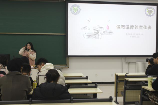 “语”你分享,宣“传”技能。新媒体宣传技能分享交流会于15时10分在教二131进行。首先,北语校研会主席团成员联络部主席姜迈千介绍交流会流程,随后由中传校研会宣传部部长蒲顾家苇及副部长李卓共同分享新媒体宣传经验。经验介绍主要包括中传宣传部运营方式、品牌推广和未来发展三个方面。其中的核桃系列等展现了宣传内容多元化、形式多样美观的重要性,也强调了互动体验对于服务同学、提高宣传质量的影响。中传宣传部目光长远,畅想未来宣传在数据新闻、海外账号等方面不断发展,给我们带来新的宣传视角。
