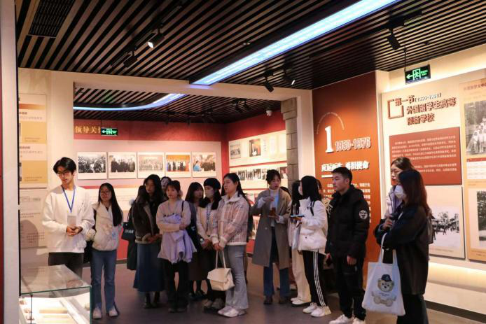 “语”你同行,“传”递友情。下午14时,两校研会同游冬日北语校园。同学们漫步梧桐大道,走过图书馆,停留在北语最著名的来园和万国墙,感受“小联合国”的独特魅力。随后活动分成校史馆参观和梧桐琴社体验两部分——在校史馆参观的同学聆听着精彩讲解,沉浸在北语的历史长河中,而在梧桐琴社体验的同学则在悠扬古琴声中感受北语的文化气息。