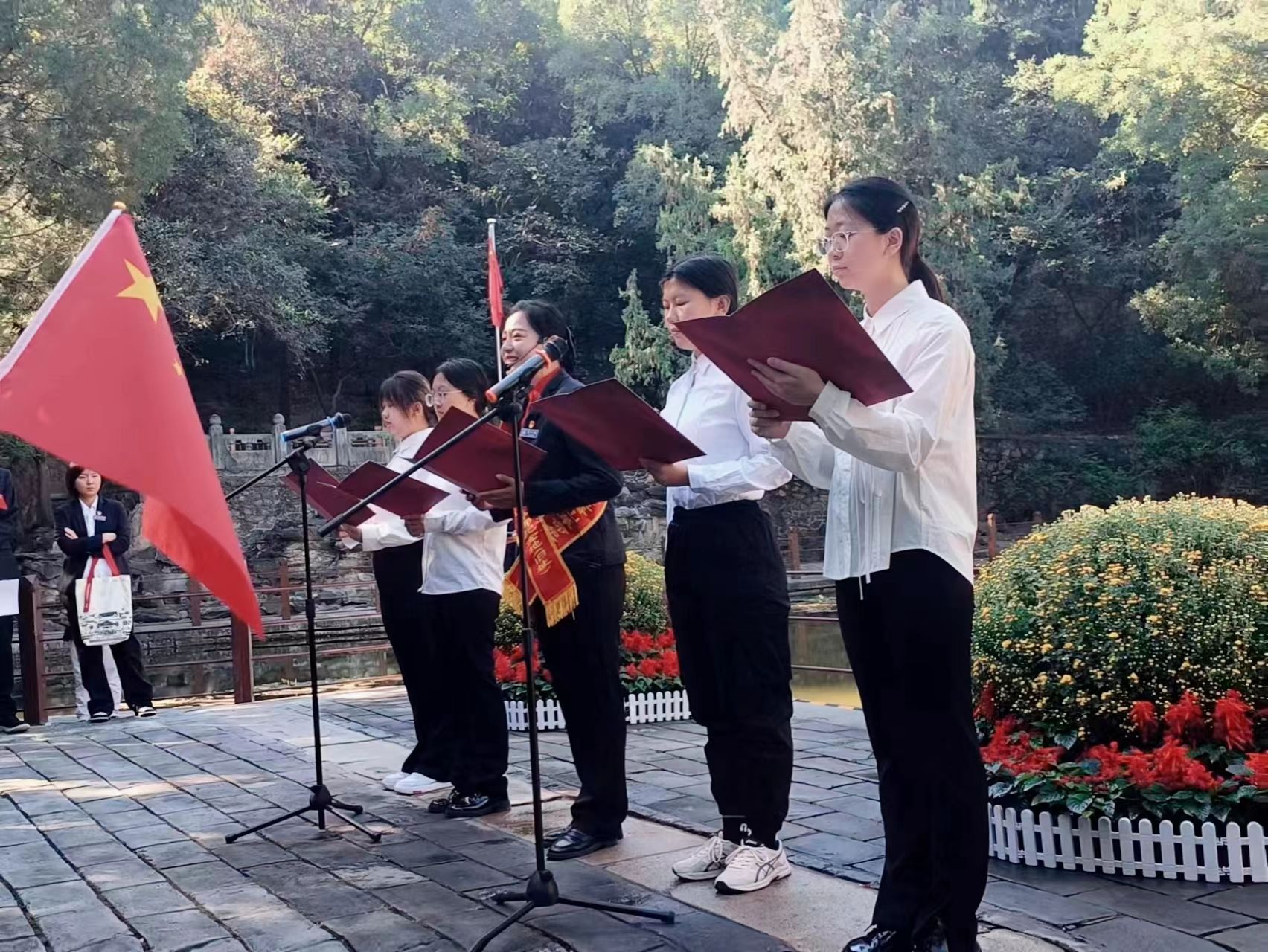 2023年国庆假期期间,文学院本科生党支部选派学生代表参加了在香山公园举办的“十月金秋游香山,赶考路上庆华诞”主题活动,歌唱美丽祖国,讲述动人故事,同庆祖国华诞。讲解志愿者们与党的二十大代表、金牌讲解员贾莉同志共同诵读《以时代之眼,我们这样看中国》诗篇。