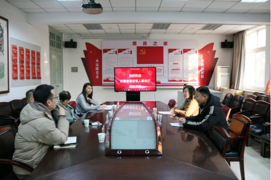 闫冬副书记首先介绍了文学院的基本情况、培养特色、思想政治教育品牌与红色教育实践案例等。安徽省退役军人事务厅优抚褒扬处处长周龙艳、副处长毕亮介绍了其工作内容与曾经开展的红色实践共建项目,表示希望与文学院一道在弘扬英烈精神,挖掘红色资源,促进爱国主义教育上做出努力。双方就具体合作事项进行了深入的探讨。双方将充分发挥高校学科优势,依托安徽省烈士纪念设施等爱国主义教育资源,逐步开展英烈宣讲人才培养和大学生思想政治教育,探索共建英烈讲解员培训基地,更好地传承红色文化,庚续红色血脉。