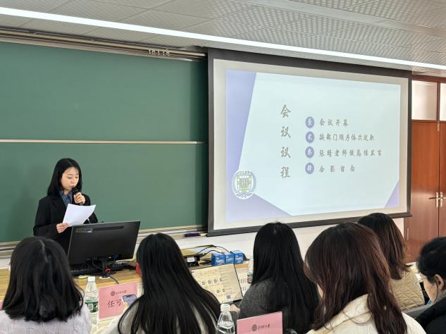 12月18日13时,北京语言大学研究生会2023-2024学年第一学期述职评议会在教二301顺利召开。校团委书记张晴老师、文学院团委书记玄铮老师、语言科学院团总支书记王紫妍老师、语言认知科学学科创新引智基地团总支书记任可歆老师、党委研工部韩开老师、语言康复学院辅导员肖芝老师出席会议,校研会主席团成员及部长层、各二级研会代表、研代会常任代表、校研会部员代表参加会议。会议由校研会办公室主任张新宇主持。