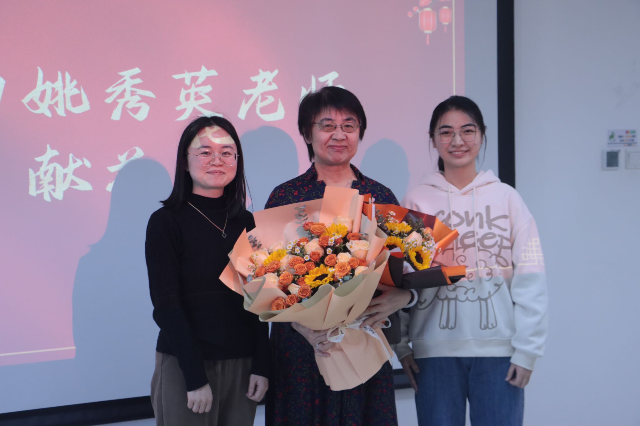 学院辅导员肖芝老师、学生代表马欣悦向姚老师献花,表达了学院师生最真挚的敬意;教师代表孔令志、王瑶、陈思远先后发言,回顾了与姚老师共同工作的美好时光,感谢姚老师在工作、生活中给予的指导与帮助;现场还播放了学生为姚老师制作的祝福视频,承载了语康学子对姚老师爱戴与感谢。