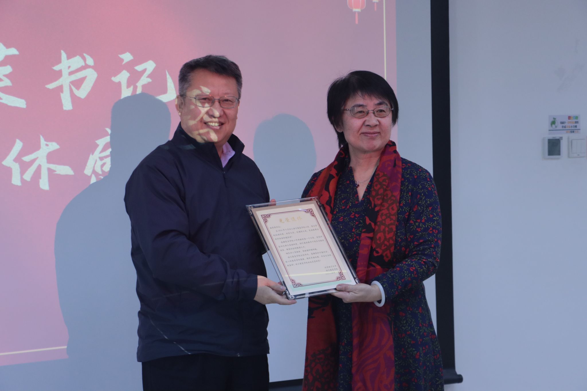高立群院长为姚老师赠送了退休礼物,马贵生副书记为姚老师颁发了光荣退休证书。