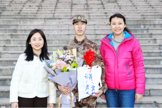 3月8日,学校党委常委、副校长黄益方,学校武装部部长武玉洲以及学院党委副书记闫冬、辅导员万阳卓在梧桐会堂东侧广场欢送即将入伍的同学。黄益方副校长代表学校向即将奔赴军营的同学们赠送入伍慰问品并对大家表示祝贺,勉励他们在人民军队这所特殊的大学校里锤炼忠诚品格和顽强意志,早日完成从一名青年学生向合格军人的转变,两年后以崭新的面貌回归校园。学院党委副书记闫冬为宁健鑫同学送上鲜花和学院准备的纪念品并表示祝贺,肯定其“好男儿志在四方”的勇气,鼓励其坚守信念、苦练本领,充分发挥专业特长,为部队多作贡献。