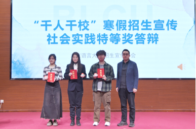 3月22日晚,北京语言大学2024年“千人千校”寒假招生宣传社会实践活动答辩会在逸夫报告厅顺利举行。党委学工部部长、学生处处长武玉洲,学生处副处长、招生办公室主任王悦,以及学生处相关部门的老师们出席了本次活动。