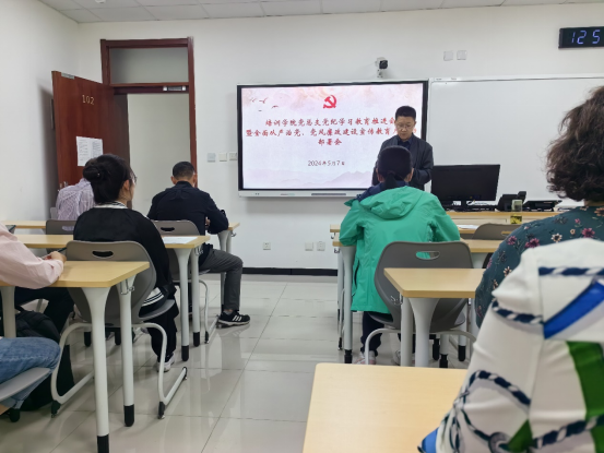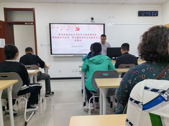 5月7日培训学院党总支召开党员大会,对前期学院党纪学习教育进行阶段性总结,部署下阶段学院党纪学习教育工作。