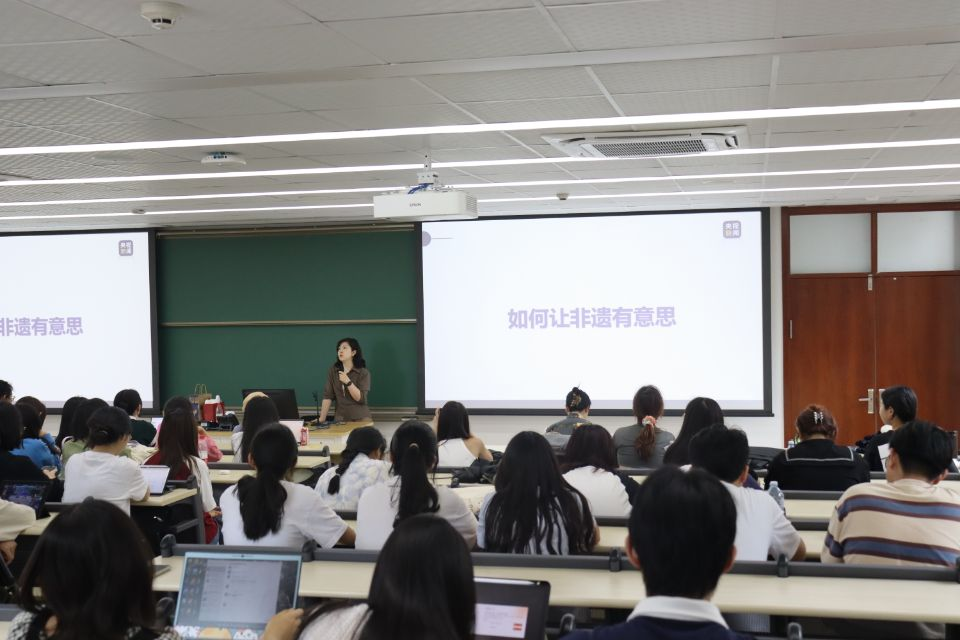 讲座开始,柴婧校友首先从两个开放性问题谈起:“大家自己会做短视频吗?”,“有什么喜欢的短视频博主吗?”。这两个问题迅速拉近了师生距离,引导同学们正确看待短视频制作。同学们热烈回应,纷纷分享自己的回答,也正是在同学们的回答中,引出了讲座的主题--“如何让非遗有意思”。柴婧校友语言风趣幽默,同学们认真聆听、积极互动,现场氛围轻松而热烈。