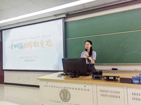 大会第三项议程,在场研究生代表共同听取审议北京语言大学外国语学部第十四届研究生会主席团三位候选人名单和简介,并表决一致通过。