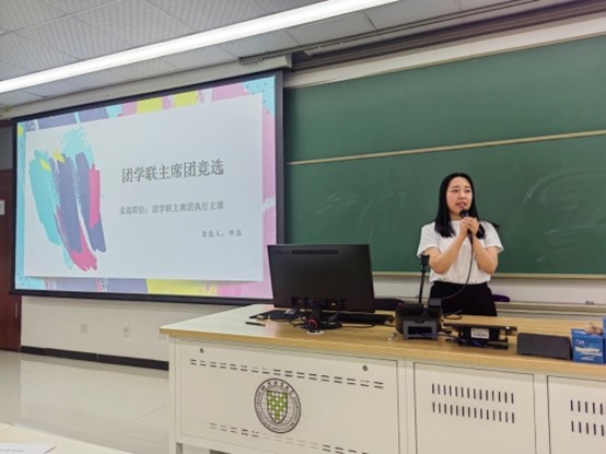 大会在第七项议程是竞选环节。根据姓氏笔画排序,三位主席团候选人毕逸飞、刘婧萱、李晶分别进行了竞选演讲,从个人简介、工作回顾、竞选优势、未来展望等方面做出一一阐述,对一年来完成的工作进行了总结反思,并充分展示了各自的优势和令人钦佩的闪光点,获得了在场老师和同学们的肯定。