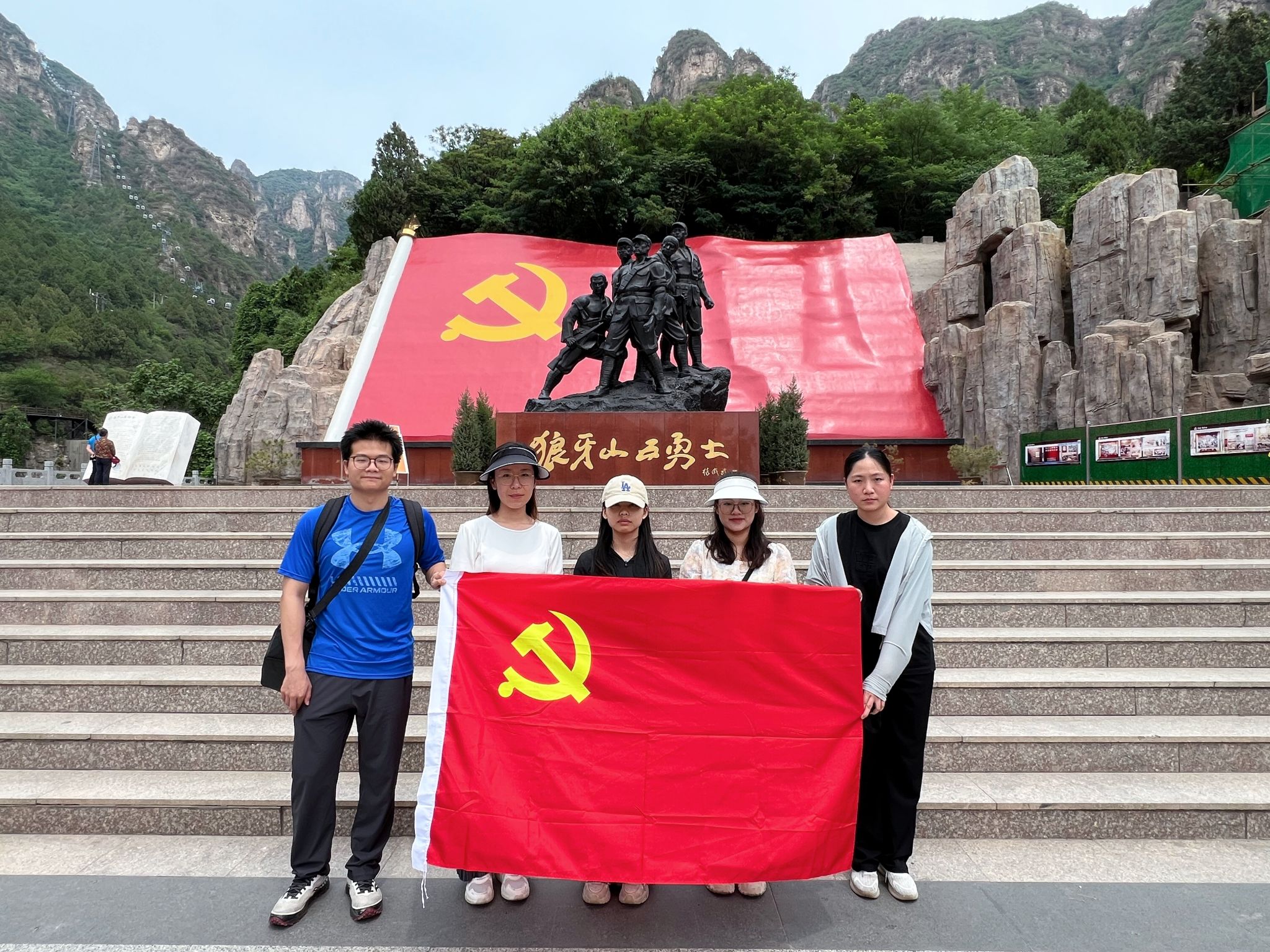 次日,研学团队前往爱国主义教育基地——狼牙山。1941年秋,五位八路军战士在这片险峰上与数百倍于己的敌人进行了殊死搏斗,最后弹尽粮绝,宁死不屈,毅然跳下悬崖,诠释了中华民族不屈不挠的抗战精神。他们的英勇事迹震撼着每个人的心灵。师生们徒步登山,伴随着沿途壮丽的自然景观与红色遗址,每一步都仿佛在重走英雄的足迹,心中激荡着对先辈们的无限缅怀与对祖国大好河山的热爱,深切体会到革命精神的伟大与和平的来之不易。
