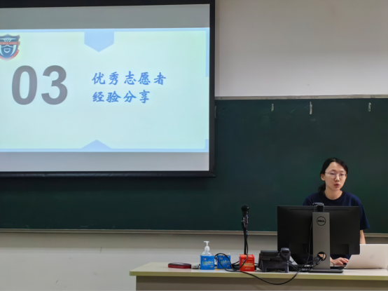 随后主持人邀请了优秀志愿者代表张珊菲同学发言,分享其参与学业帮扶活动的经验和收获。张珊菲同学提出,志愿者首先要与学员建立信任感与亲近感,与他们先成为朋友,关心他们的学习生活,共同努力与进步;其次,要注重因材施教,要认识到不同学员对于知识点理解与掌握的速度、程度差异,发掘他们自身的特点与潜力;最后,要重视练习,让学员通过对习题和考点的反复训练来达到帮扶效果,让他们面对不同类型的考题也能得心应手,游刃有余。