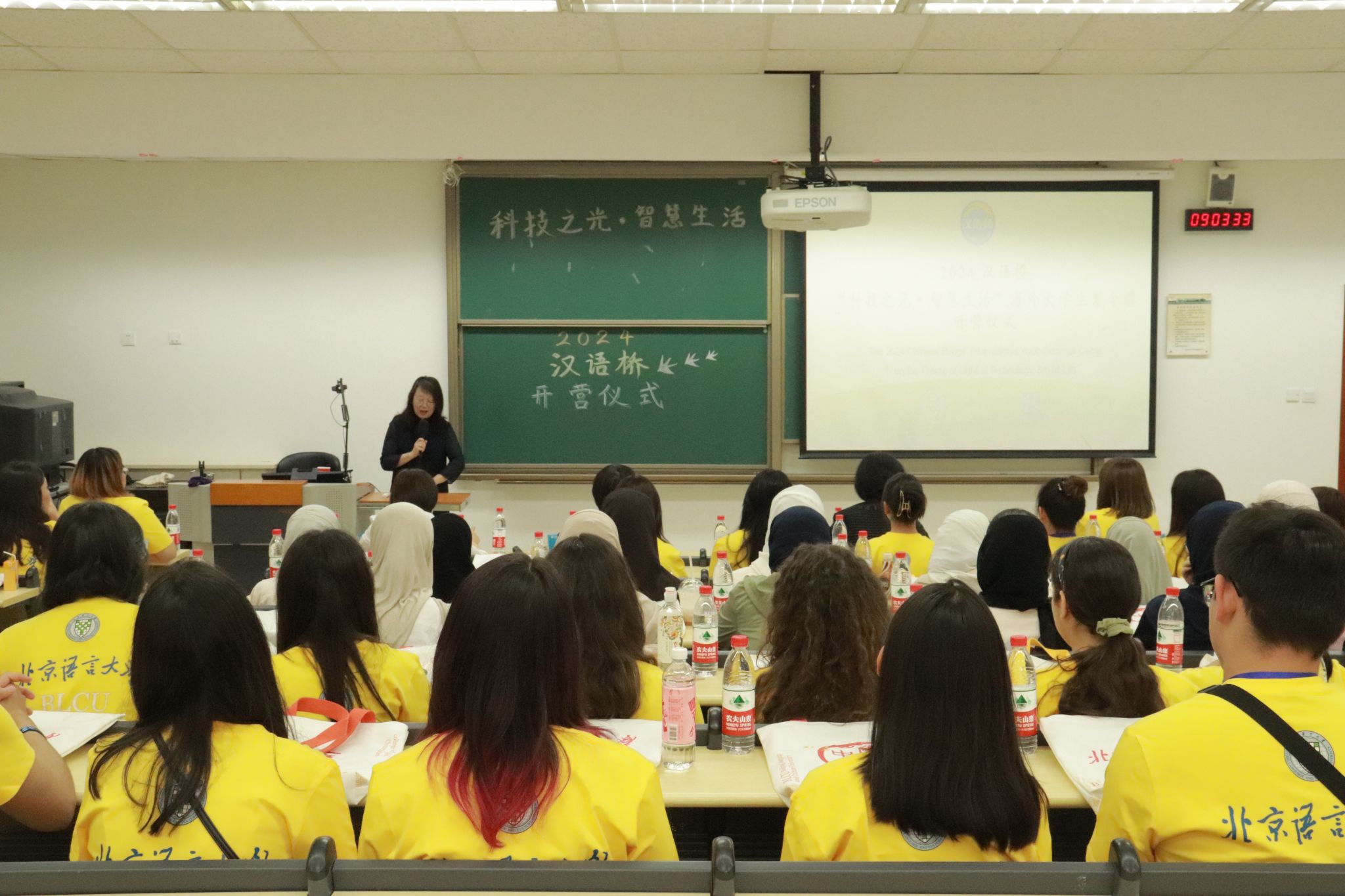 在开营仪式上,北京语言大学应用中文学院院长、中华文化国际传播中心主任苏英霞教授代表学院和学校对营员和带队老师们表示热烈欢迎。她指出,“科技改变生活,科技无国界”,希望所有营员在中国的日子里能够感受到北京独特的科技风采和文化魅力,在心中种下科技的种子,在未来能够投身科技发展,成为促进中外民间友好交流的使者,造福各国人民。