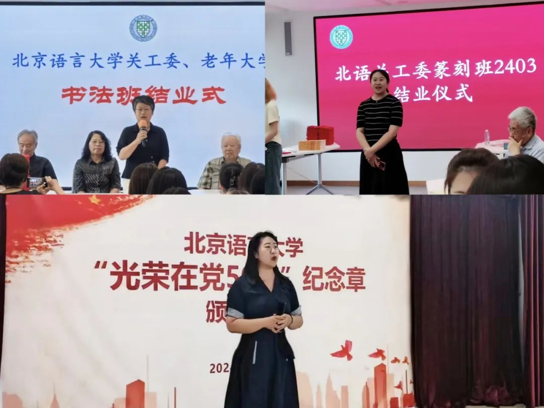 为进一步传承和弘扬中华优秀传统文化,北京语言大学关心下一代工作委员会(简称“北语关工委”)于2024年春季学期精心策划并开设了系列传统文化课程。经过八周的深入学习与实践,篆刻、书法与京剧三门课程于近日圆满结课,离退休工作处党委书记崔克娟、副书记阮晓曦出席了结课仪式。